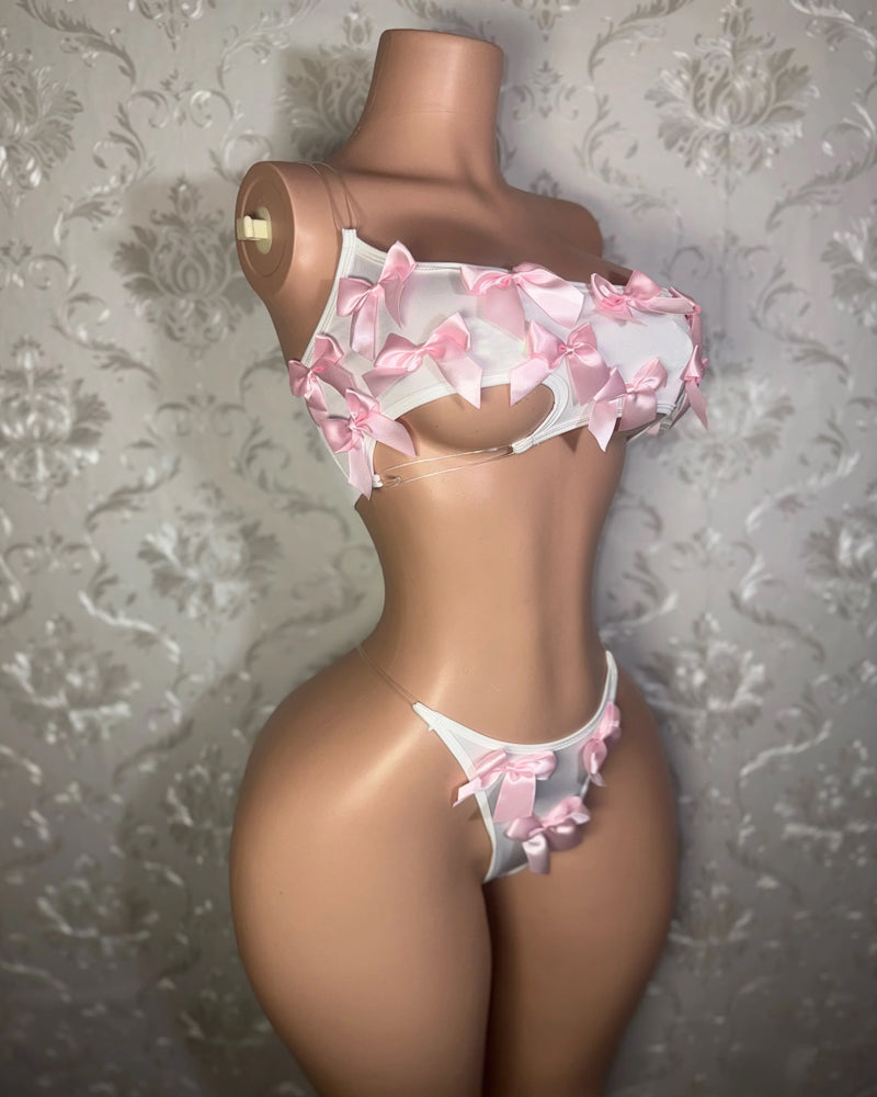 3D Bow-decorated Sexy Strapless Bra and Thong Lingerie Set