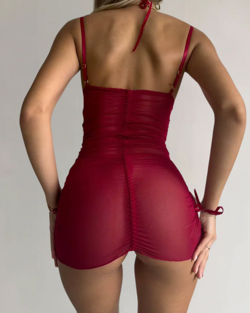 Festive & Flirty: Velvet and mesh design with bunny ear accents