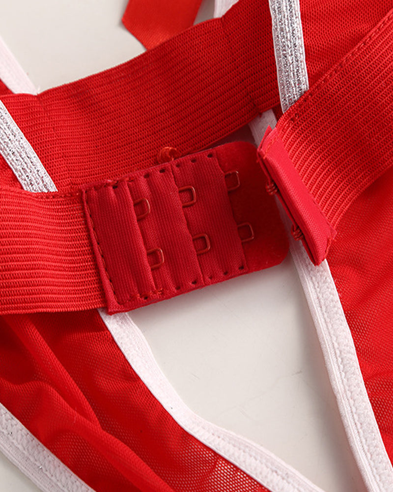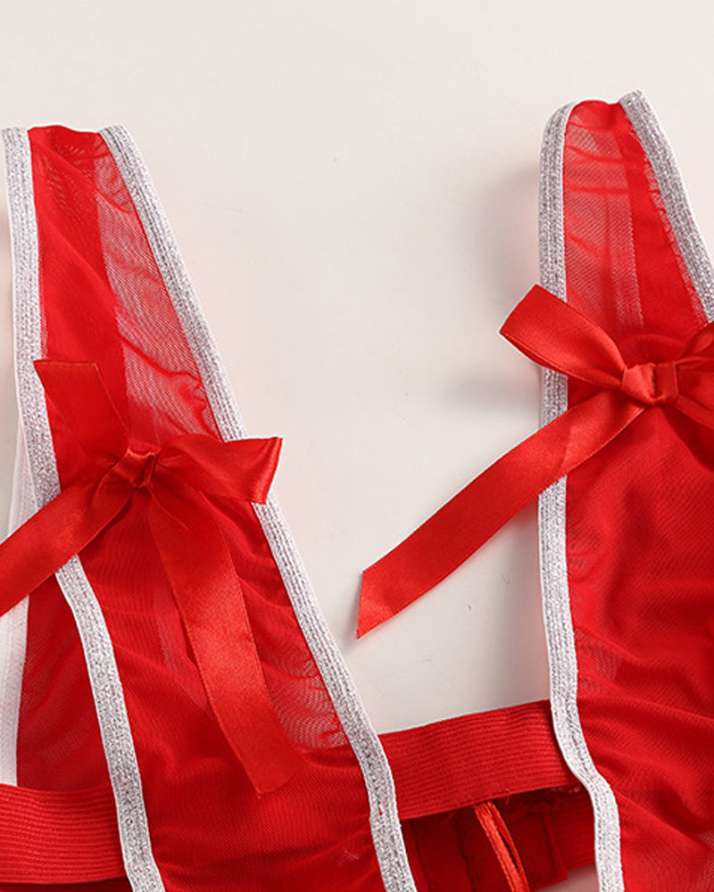Unwrap the ultimate festive fantasy with this complete Christmas lingerie set. Featuring a daring deep V neckline and playful bell decorations, this bodysuit combines holiday charm with provocative style. The included Santa hat headband completes your festive look, making this ensemble perfect for spreading seasonal cheer with confidence and allure.