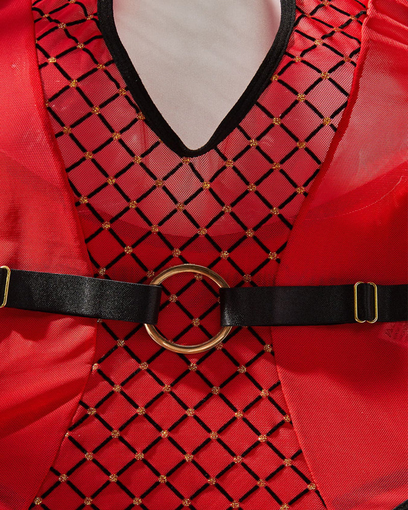 Daring Design: Features strategically placed mesh panels with a chic diamond print, creating a sexy hollow-out effect.