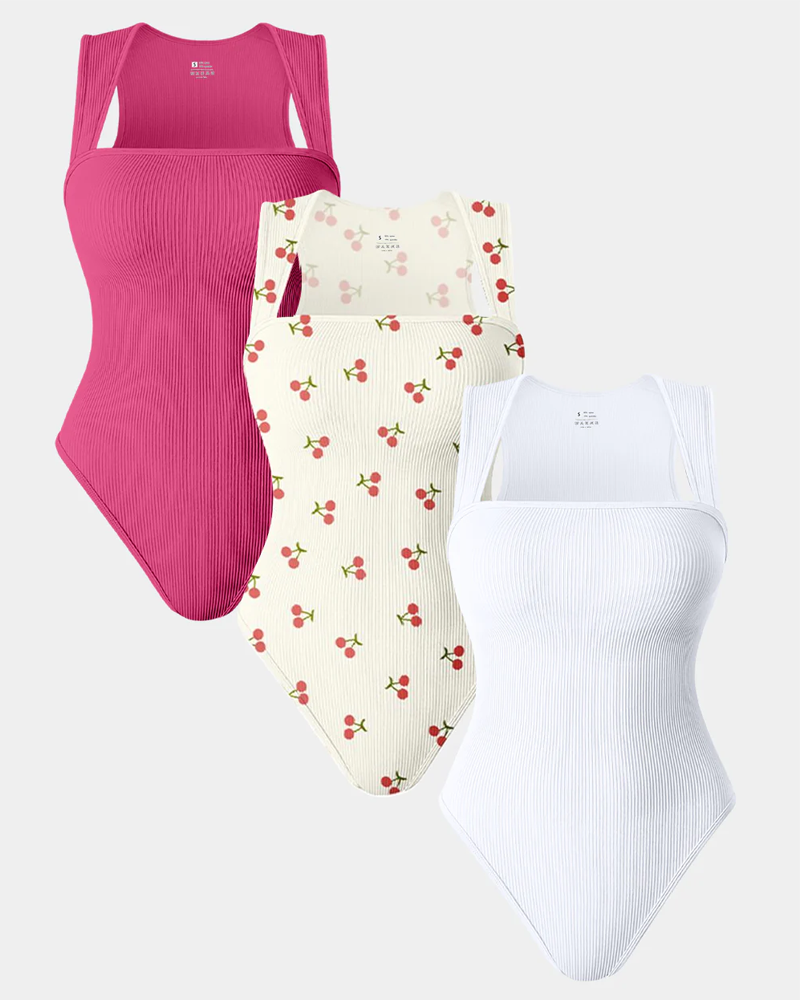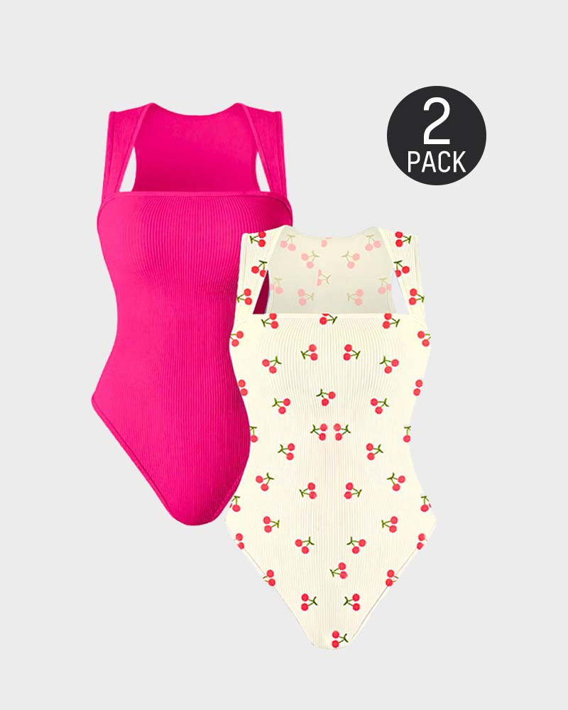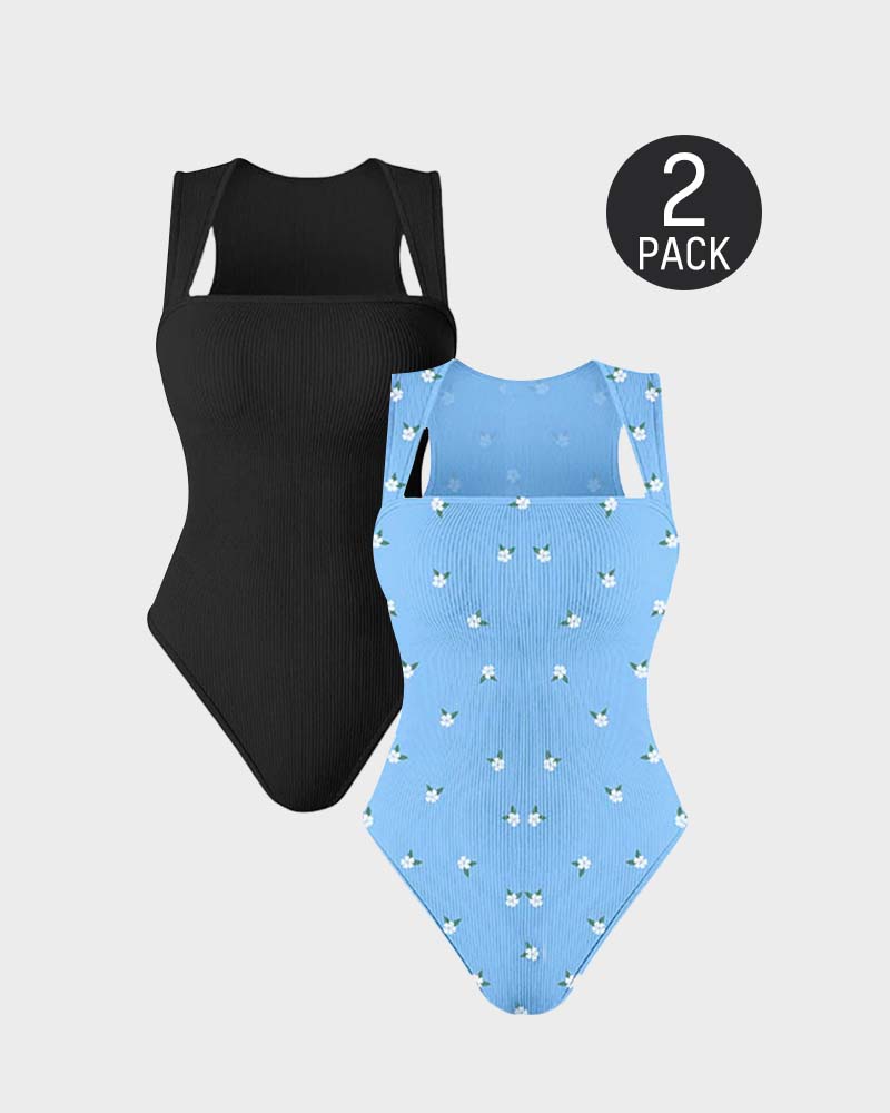 Women's Square Neck Sleeveless Knit Ribbed Vest Bodysuit