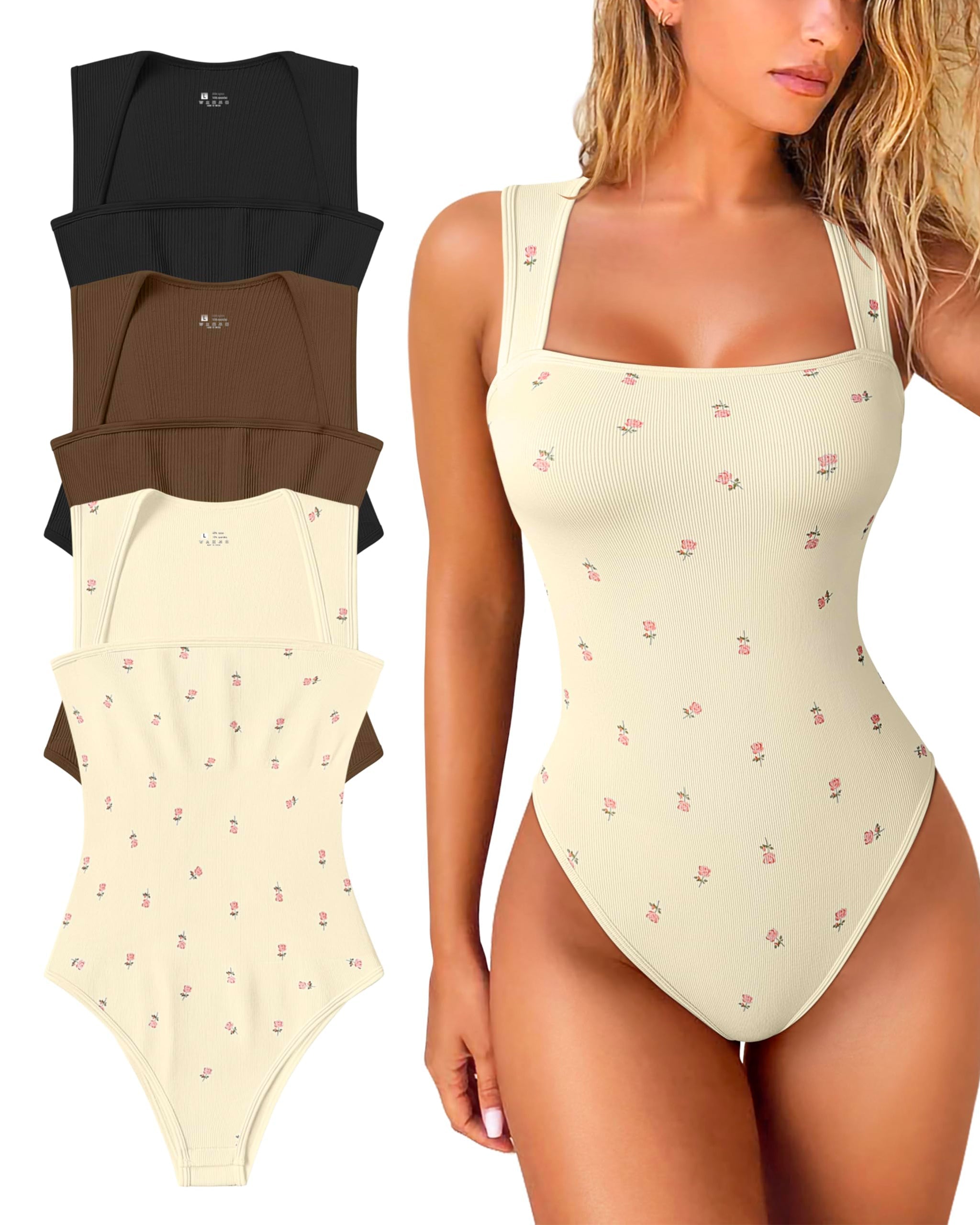 • Flattering square neckline with tapered shoulder straps