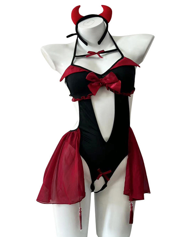 Little Devil Costume Role-playing Sexy Hollow-out Erotic Bodysuit Lingerie