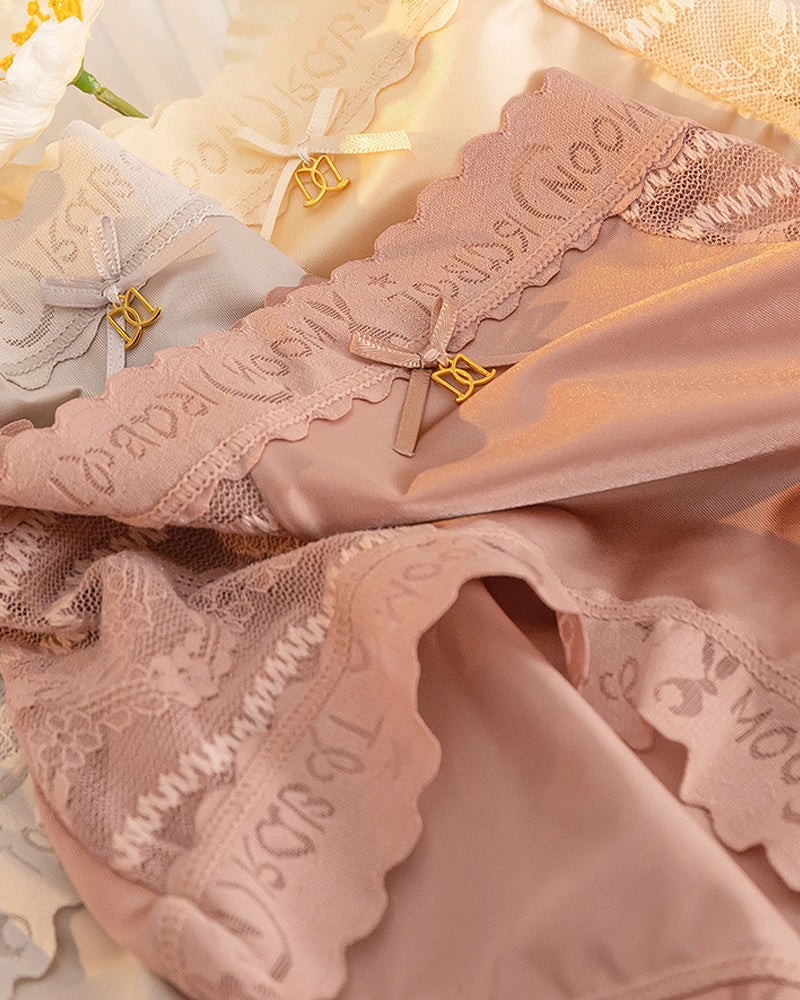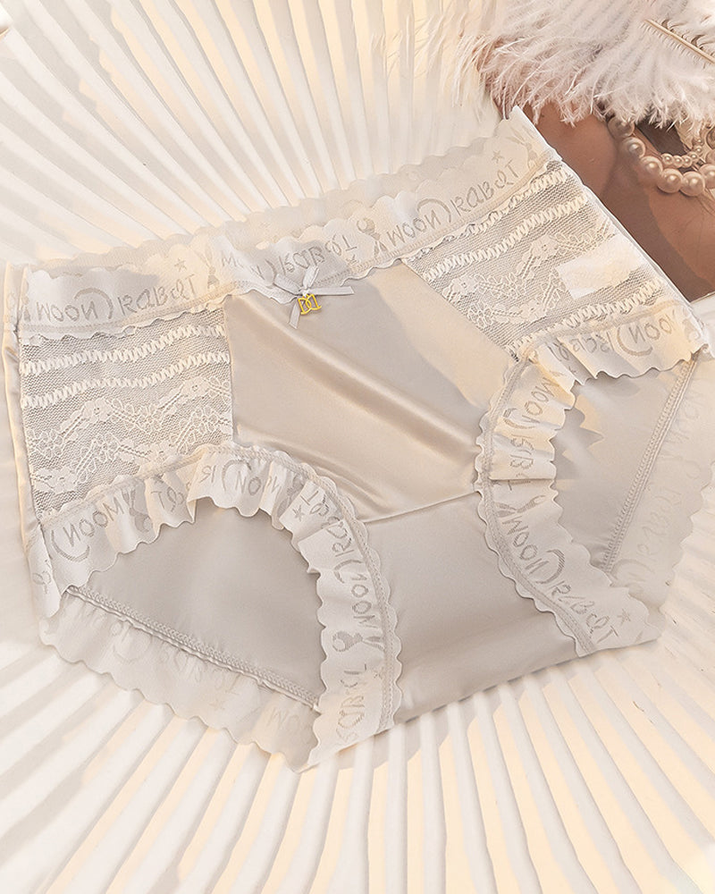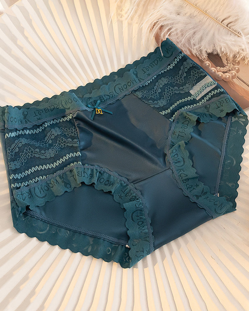 Mid-Rise Antibacterial Crotch Breathable Seamless Lace Satin Briefs