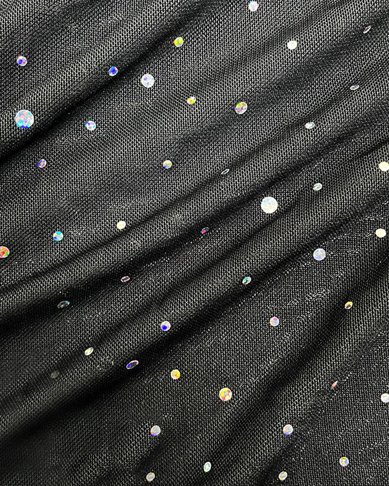 Material: Sheer Mesh, Polyester Blend & Rhinestone Embellishments
