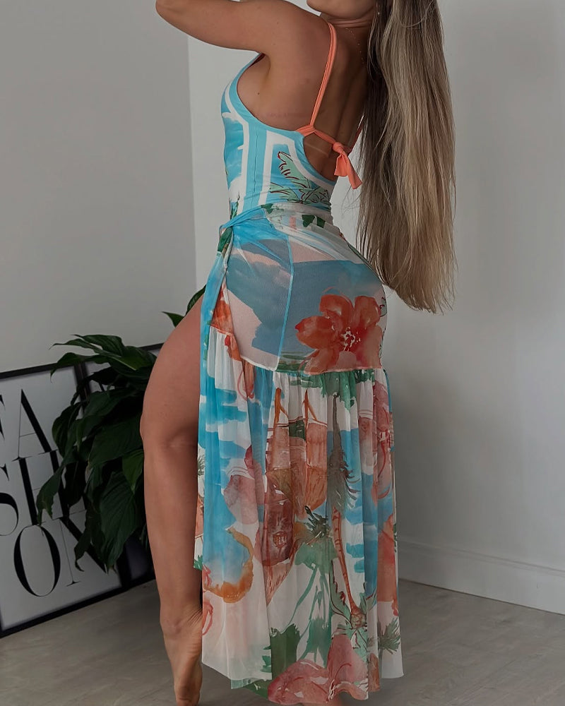 Channel vintage glamour with this stunning retro-inspired swim set. Featuring a bold colorblock design and timeless floral prints, the swimsuit offers a flattering high-cut silhouette, while the matching cover-up adds effortless poolside elegance. Perfect for making a statement on sunny days or tropical getaways.