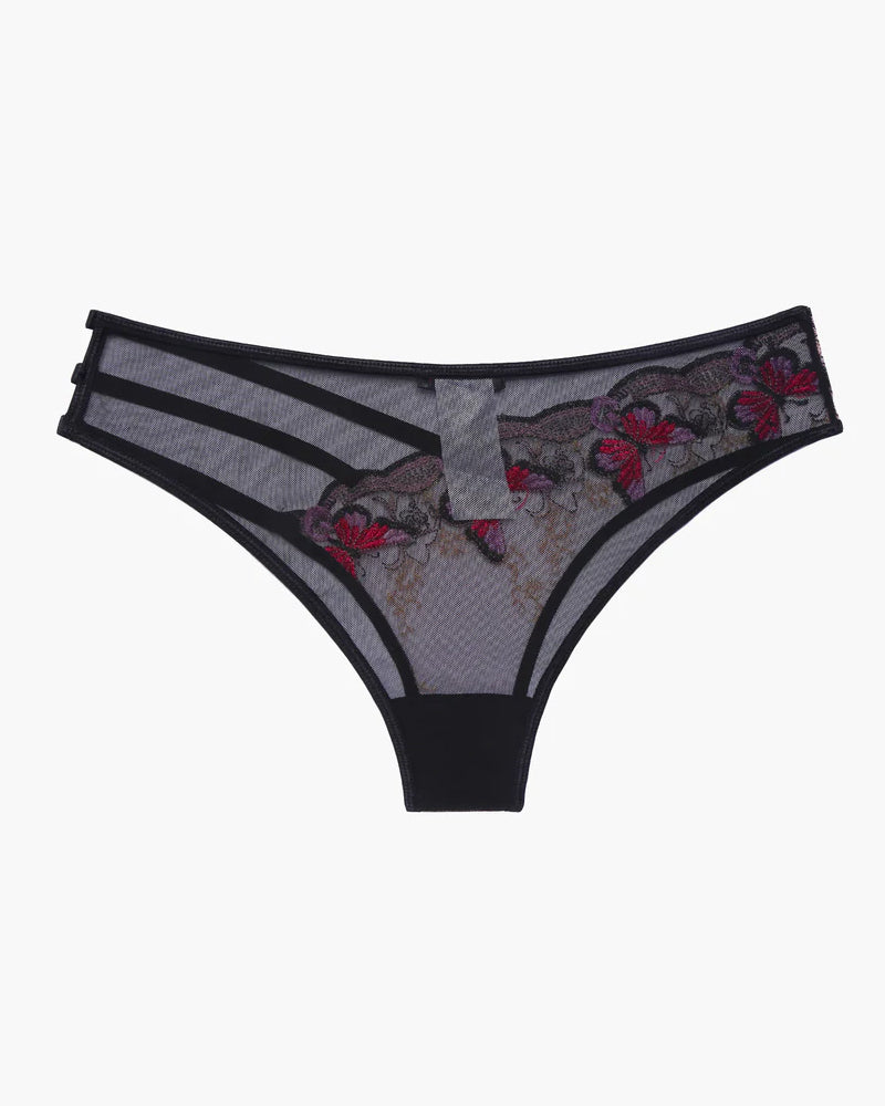 Add a delicate touch of whimsy to your lingerie collection with these enchanting panties. Featuring intricate butterfly embroidery on soft sheer mesh, they blend feminine charm with provocative transparency. Perfect for everyday allure or special moments, these panties offer a flirty yet elegant statement.