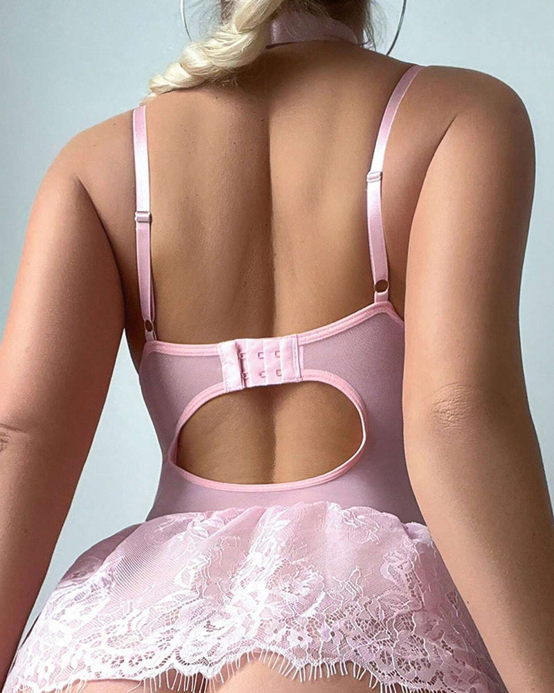 Sexy Floral Lace Suspender Babydoll & Garter Set