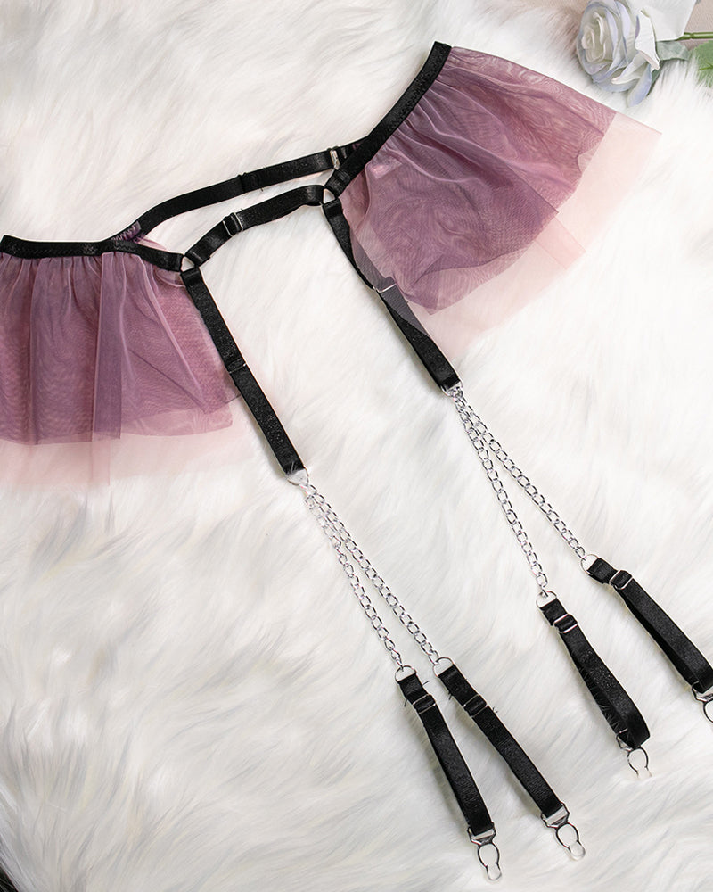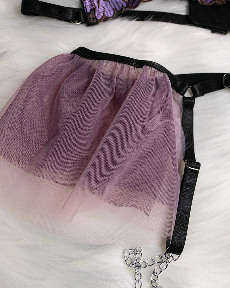Meticulously crafted to blend floral romance with daring allure, this hollowed-out ensemble features intricate embroidery and sheer mesh that creates a captivating play of concealment and revelation. Perfect for intimate moments or confident self-expression, this piece is a wearable work of art.