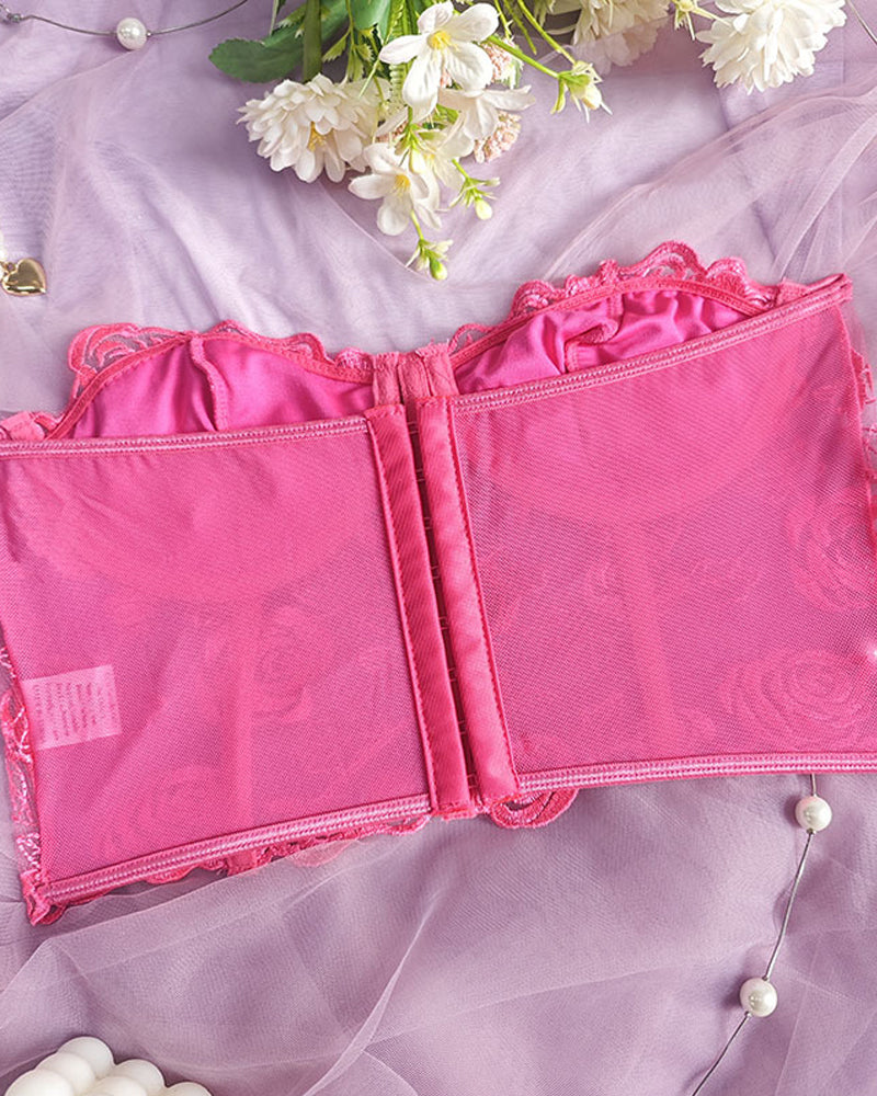 Sexy Flower Lace Mesh Herringbone Tube Top