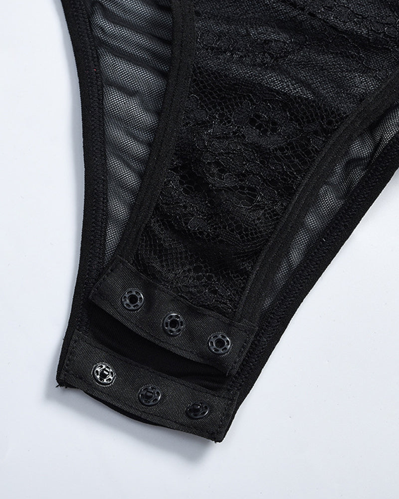 Embrace alluring elegance with this sculpting lingerie bodysuit. Delicate lace and sheer fabric create a tantalizing see-through effect, while the underwire design lifts and shapes your bust. Perfect for romantic evenings or boudoir styling, this piece combines sensual allure with figure-enhancing support.