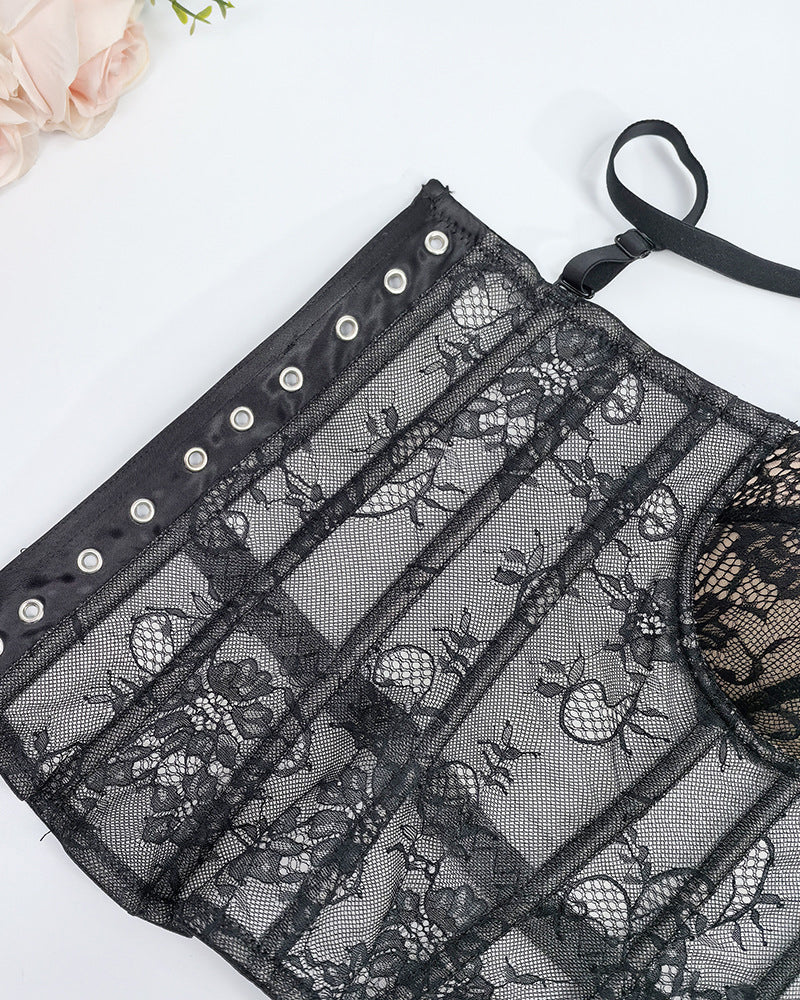 Sexy Strapless Lace Mesh See-through Underwire Bra Back Tie Fishbone Top
