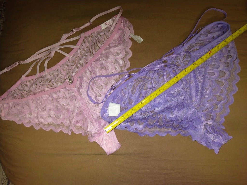 This set of four cross-back lace panties are fantastic. They are extremely silky smooth and well-made. These fit wonderfully because they are very stretchy without being too tight and rolling down. They are also adjustable (as in my photo) and comfy. The lace is very nice, and not at all scratchy or itchy. The pink and purple panties are a very true to the colors shown. These are comfortable enough to wear all day and night. I am planning on buying more since they're just so nice. I'm extremely happy with these. 💞💝💞