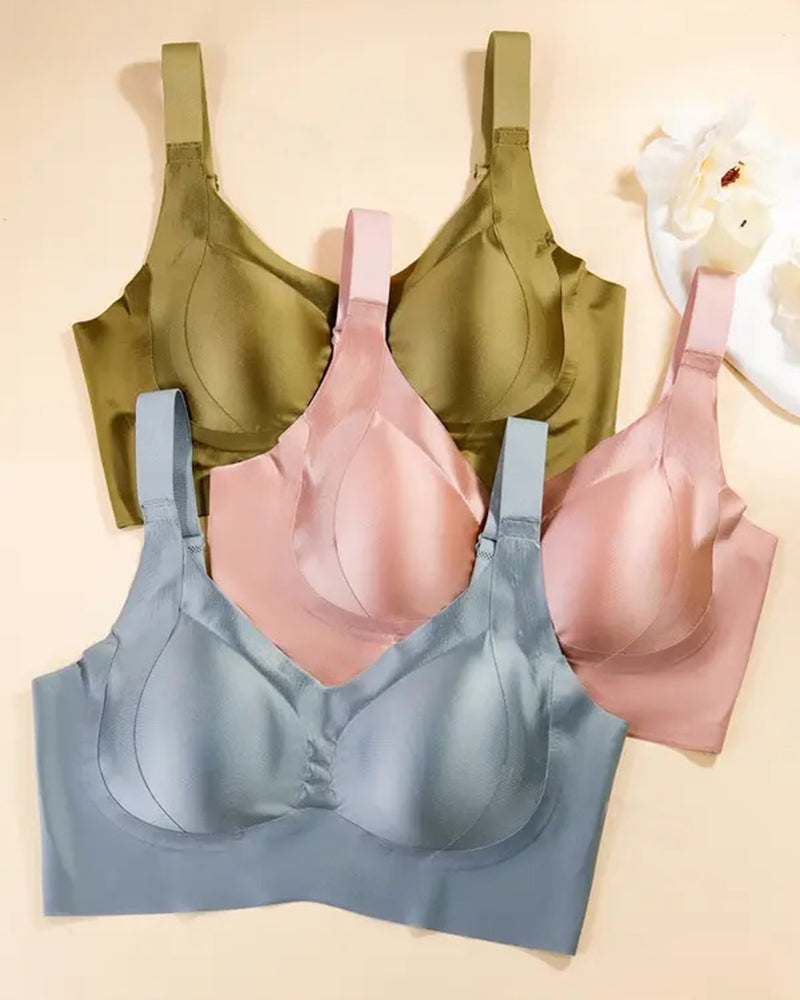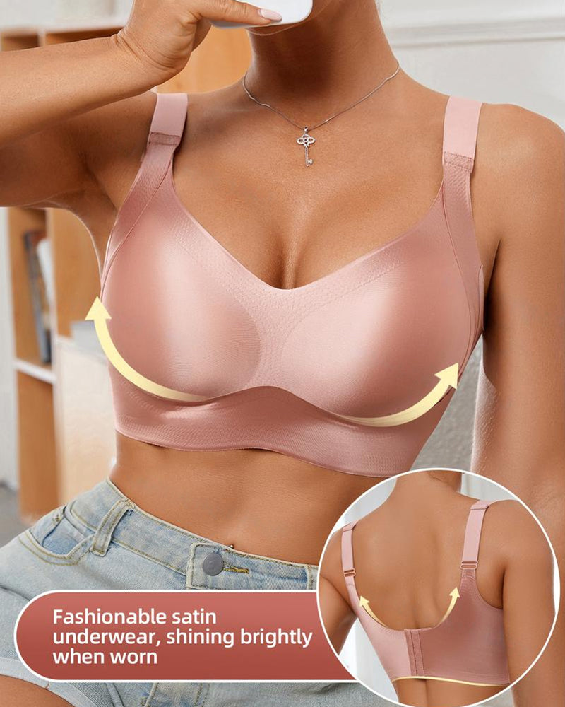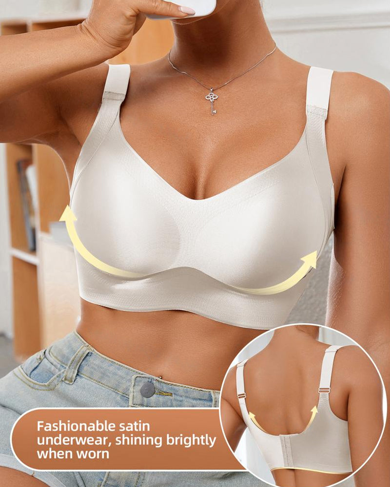 Elevate your everyday essentials with this sophisticated wireless bra. Crafted from smooth luminous fabric with a subtle shimmer, it offers seamless comfort, natural push-up shaping, and breathable all-day wear—perfect for daily confidence or special moments.