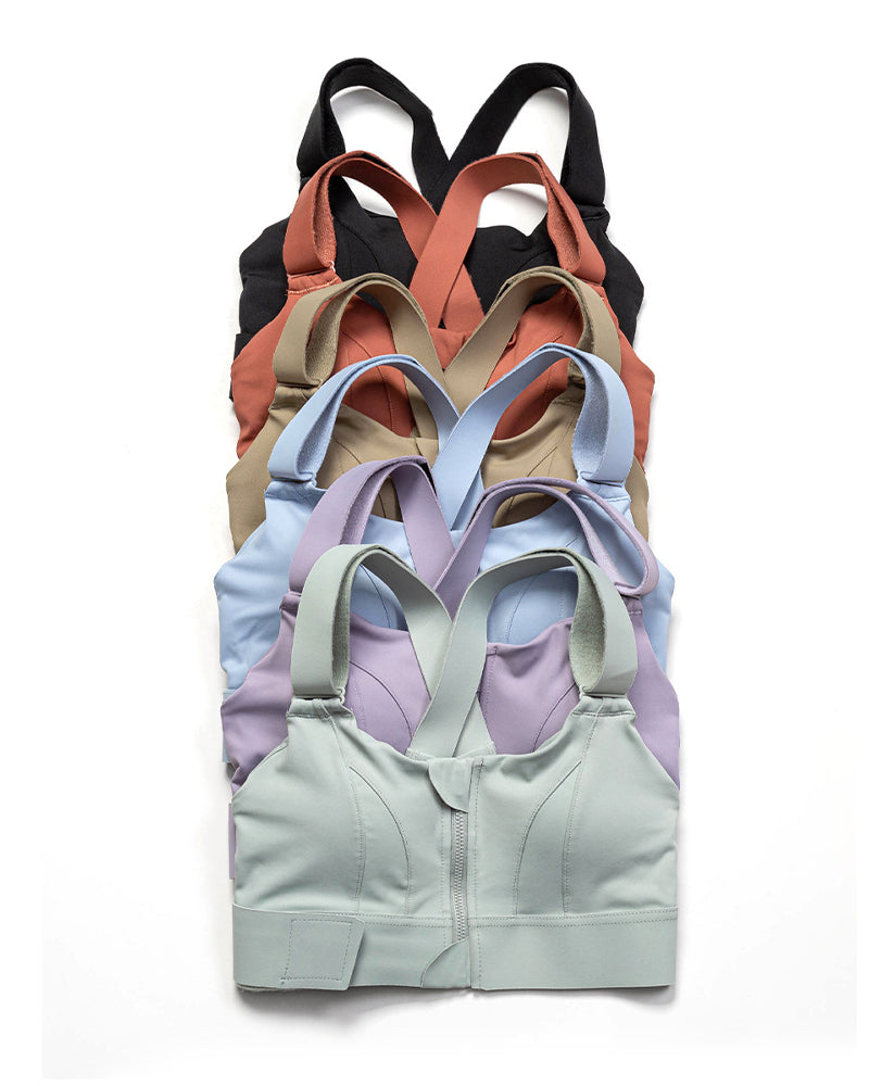 Women's Zipper Front High-Strength Support Adjustable Straps Cross Back Fitness Sports Bra